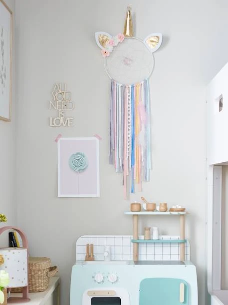 Licorne féérique et attrape-rêves fantastiques, 2 légendes réunies pour protéger les enfants des mauvais rêves ! Accrochez près du lit, cet attrape-rêves rassure les enfants et décore la chambre avec poésie.